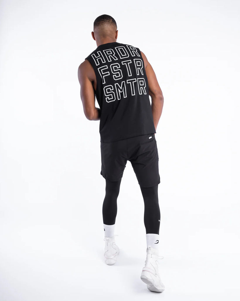 The stretch cotton muscle tank is constructed to provide you with optimal airflow to the body while leaving your tools unrestricted. Featuring our signature HRDR FSTR SMTR® slogan across the front and back, this vest style tank top demands that you work harder, move faster and fight smarter in all that you do. Fighters can look good in and out of the ring in this sleeveless training top.