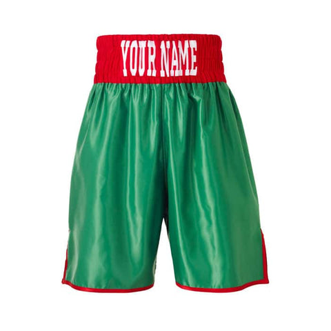 Classic Satin Customisable Junior Boxing Shorts, Haggler Style Design with a Contrasting Waist Band. Available to buy online with a plain waist band or with a simple waist band embroidery as a standard design with approx 4 week delivery timeline.