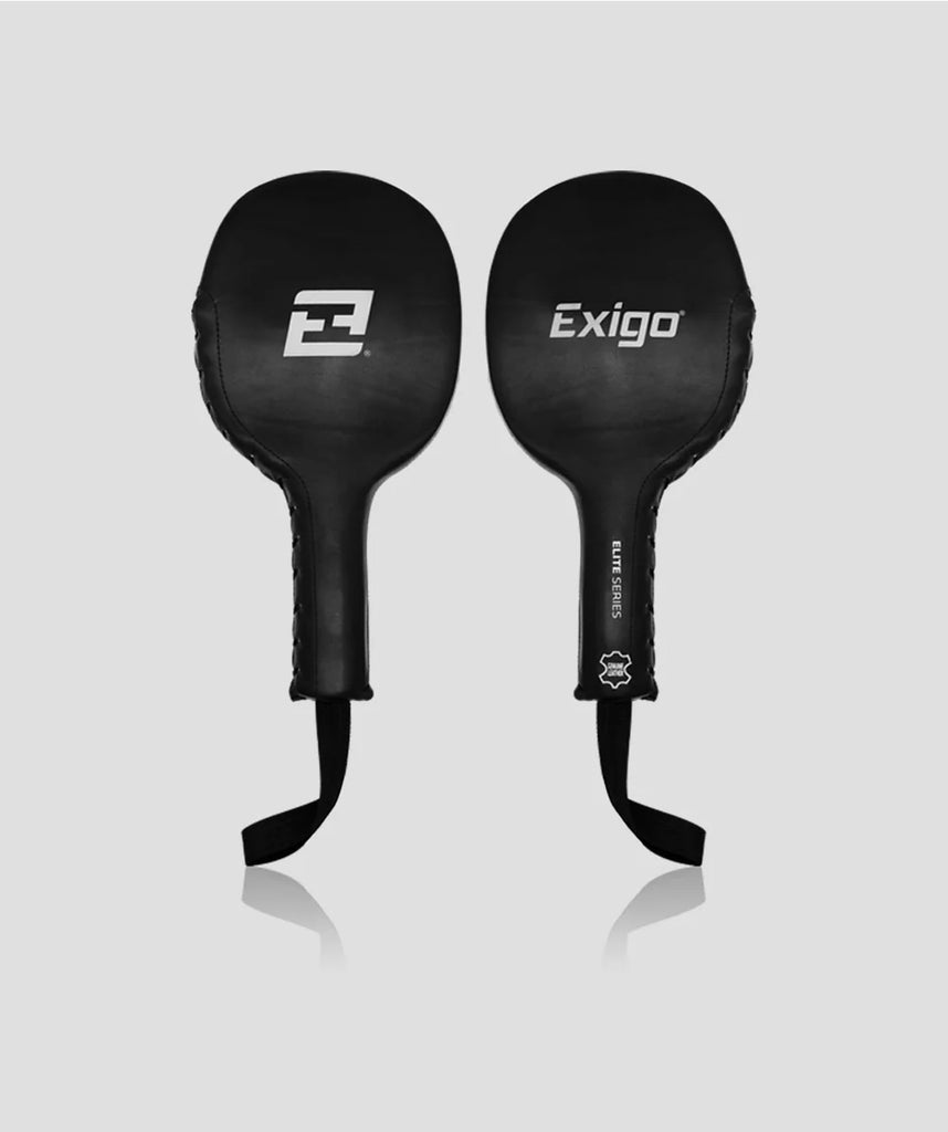 The Exigo Elite Punch Paddles allow quick target changes to help you improve your boxers reflexes, hand speed and accuracy. A great coaching alternative to focus punch mitts, these lightweight boxing paddles are made with a strong core and durable cowhide leather and feature wrist loops for added security. Developed to improve the fighters precision timing, speed and accuracy, they are perfect boxing and combat sports tool for a coach to train boxer to work on offensive and defensive skills and techniques at the same time, while offering training variety from the normal hook and jab pad routines.