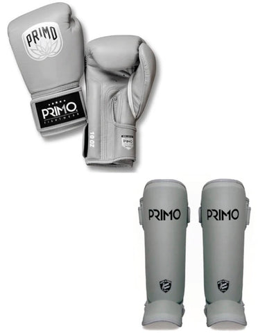 Our Muay Thai Sparring Set features Primo Emblem Gloves and Classic Shin Guards In Grey. Bundle Features: