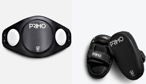This PRIMO Coaching set feature Thai Style Small Pads and a Belly pad ideal for Kickboxing, K1 and Thai Boxing Training. Set Features:
